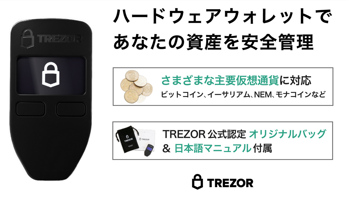 TREZOR(トレザー)は、ビットコイン、イーサリアム、ネム、モナーコイン等の仮想通貨を 安全に保管・管理できるハードウェアウォレットです。